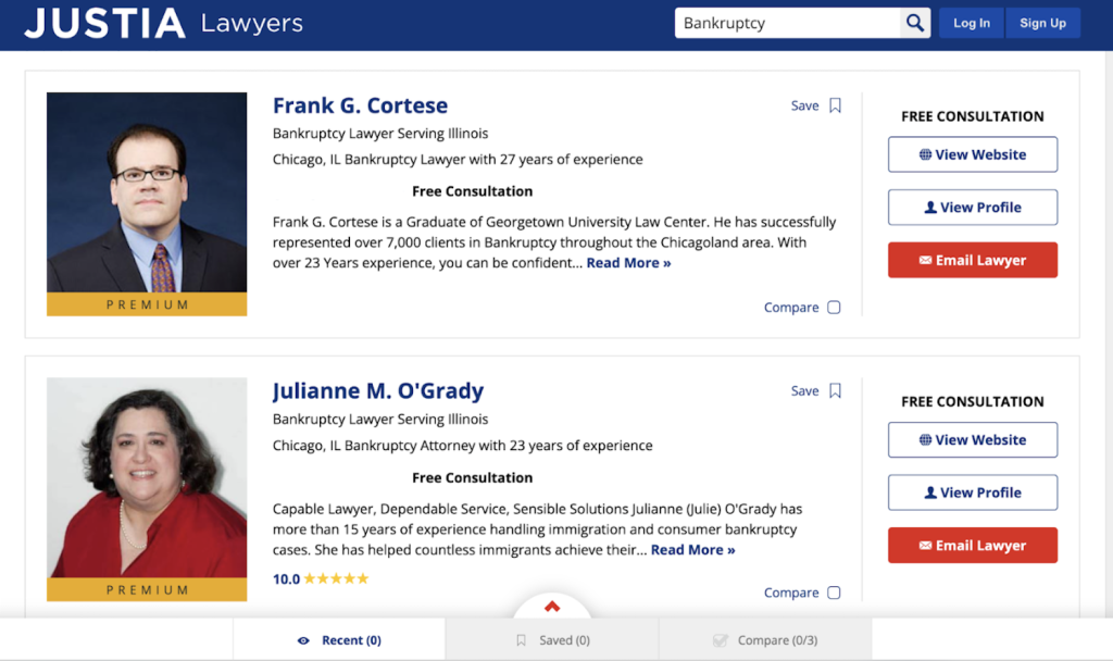 Here’s how insolvency lawyers from Illinois appear listed: