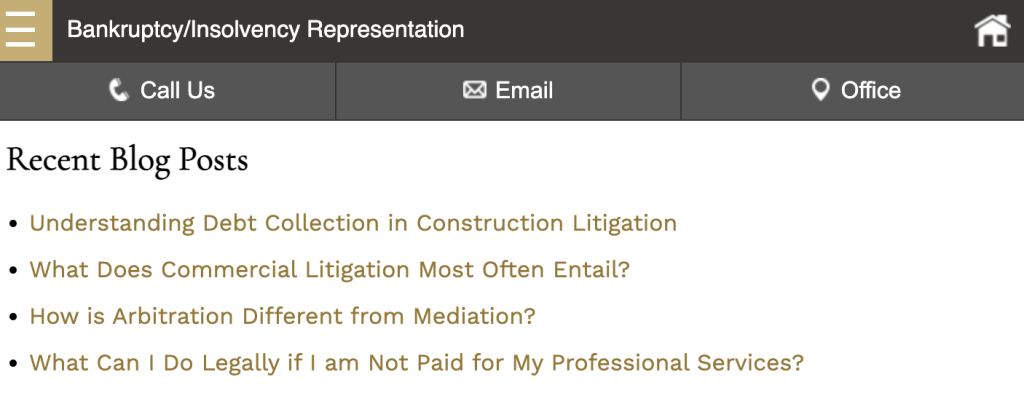 Here’s an example of a bankruptcy law firm website with clearly organized links: