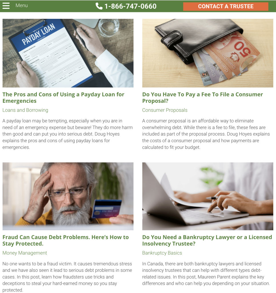 Therefore, you appeal to Google and discerning searchers with content that’s not only relevant but useful. Consider a blog that acts like a knowledge base answering common insolvency questions: