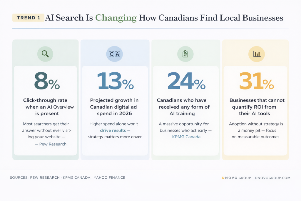 It’s already transforming how people look up local businesses, allowing people to compare and contrast before they ever click onto a website. In fact, when an AI overview was present, only 8% of searchers actually clicked through to a website.