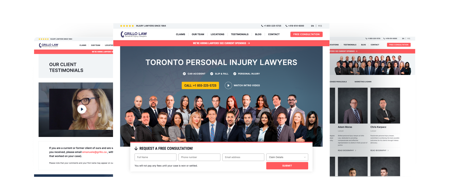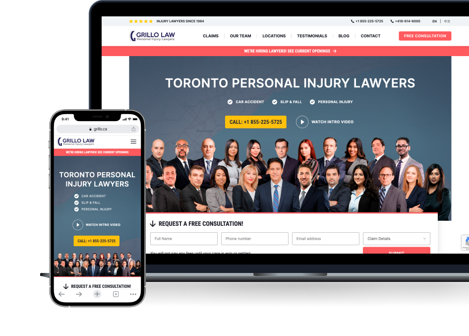 The team at Grillo Law had an older website, and their digital presence had been stagnant because of it. The whole practice needed rebranding from scratch. That meant a completely new and custom website, with new visuals, new colours, new content, new design, etc. It was our goal to create a completely new image for Grillo Law, one that reflected the professionalism and passion of the law firm.