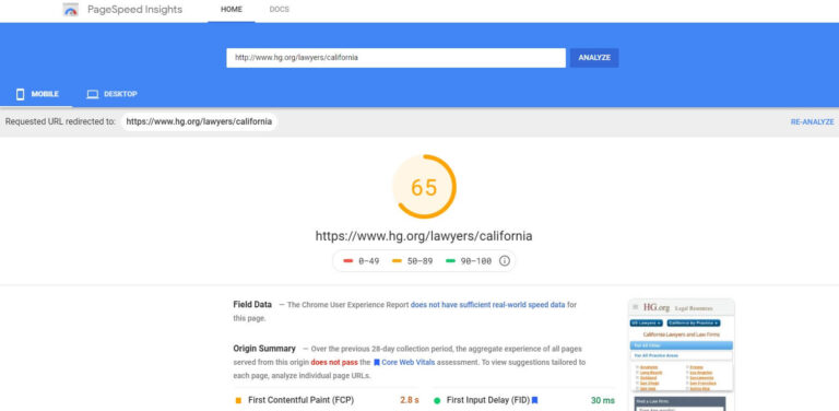How fast your website loads is an important Google ranking factor. It directly impacts user experience and how users are able to interact (or not) with a website. The faster the website, the better. How do you audit your law firm’s page speed and improve it? Run the domain through PageSpeed Metrics.