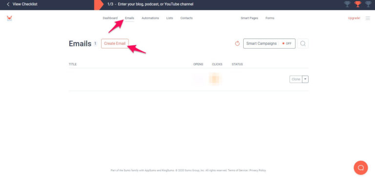 Click the “Emails” tab and select “Create Email.”
