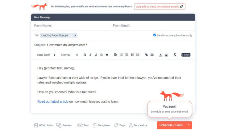 Secondly, share it with your email list. You can use a free platform like Sendfox to begin collecting emails and sharing newsletters to drive traffic back to your law firm website.