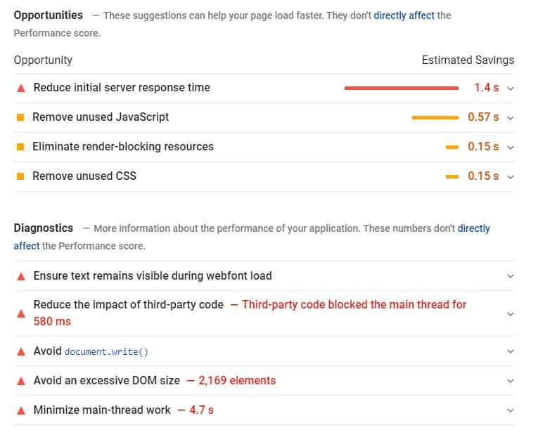 Scroll down to see what opportunities there are to speed up your firm’s website. These include server response time, removing JavaScript, and minifying CSS.