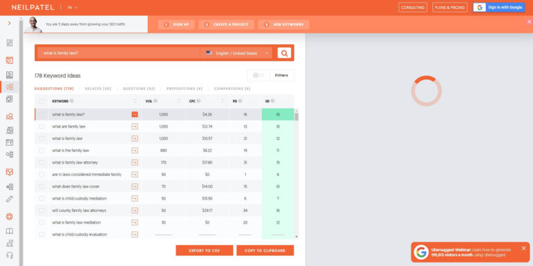 Content needs to serve a purpose and not just look good on your website. As a family law attorney, it’s important that content on your website generates leads and traffic. To do this, it needs to be optimized for an effective family lawyer marketing. To begin, take the topic of the article and run it through Ubersuggest. This is an SEO tool that will help you find valuable search terms.