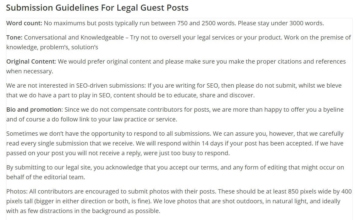 One way to personalize your email is by following their guest post guidelines. These are the rules they ask writers to follow regarding tone of voice, style, and so on. Following these as closely as possible maximizes your chance of being accepted. It looks like this: