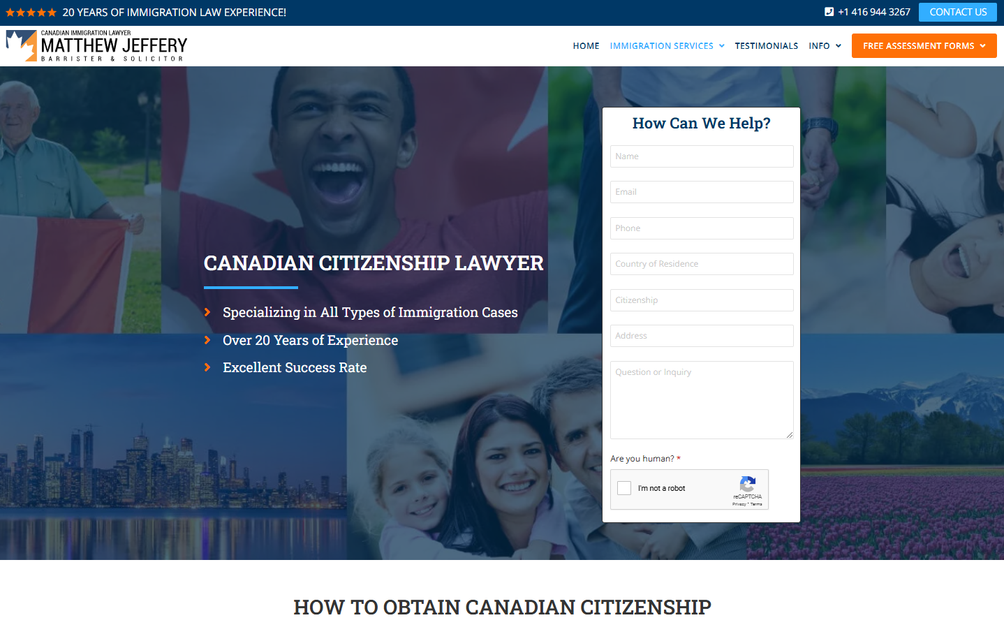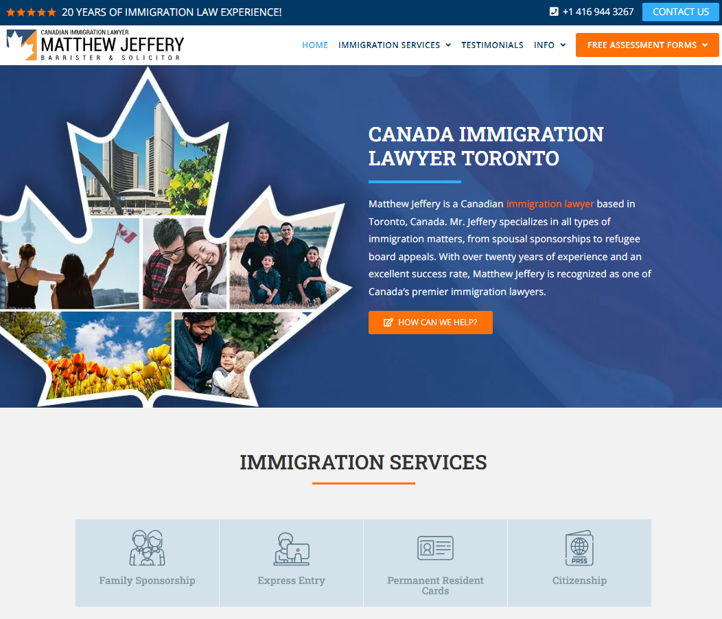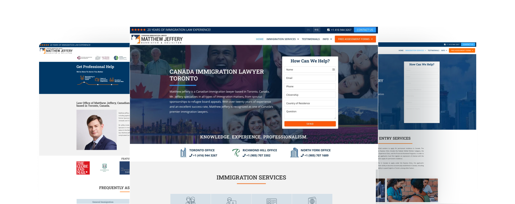Matthew Jeffery, Canadian immigration lawyer based in Toronto, Canada was looking for a way to improve the firm’s position in search engine rankings, drive more traffic to the firm’s website and improve conversion. Learn about Matthew Jeffery website design success.