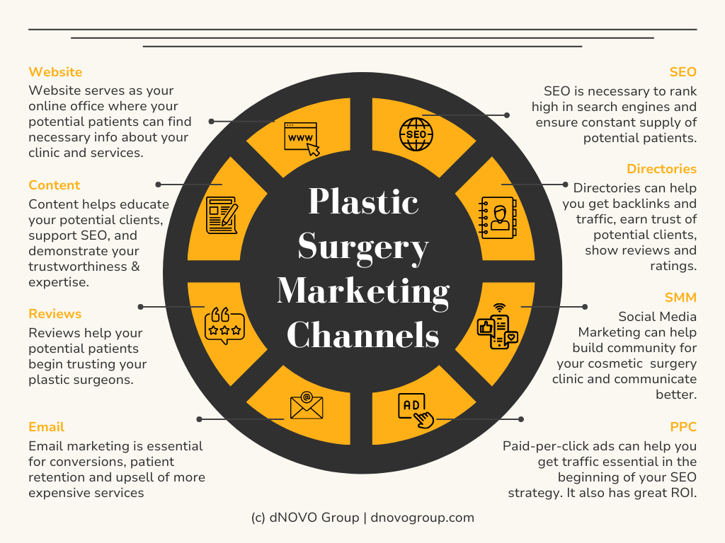 Marketing experts of dNOVO Group created this guide to help you build and implement comprehensive plastic surgery marketing strategy. It contains the key insights and expertise we acquired over the years of working with our clients.